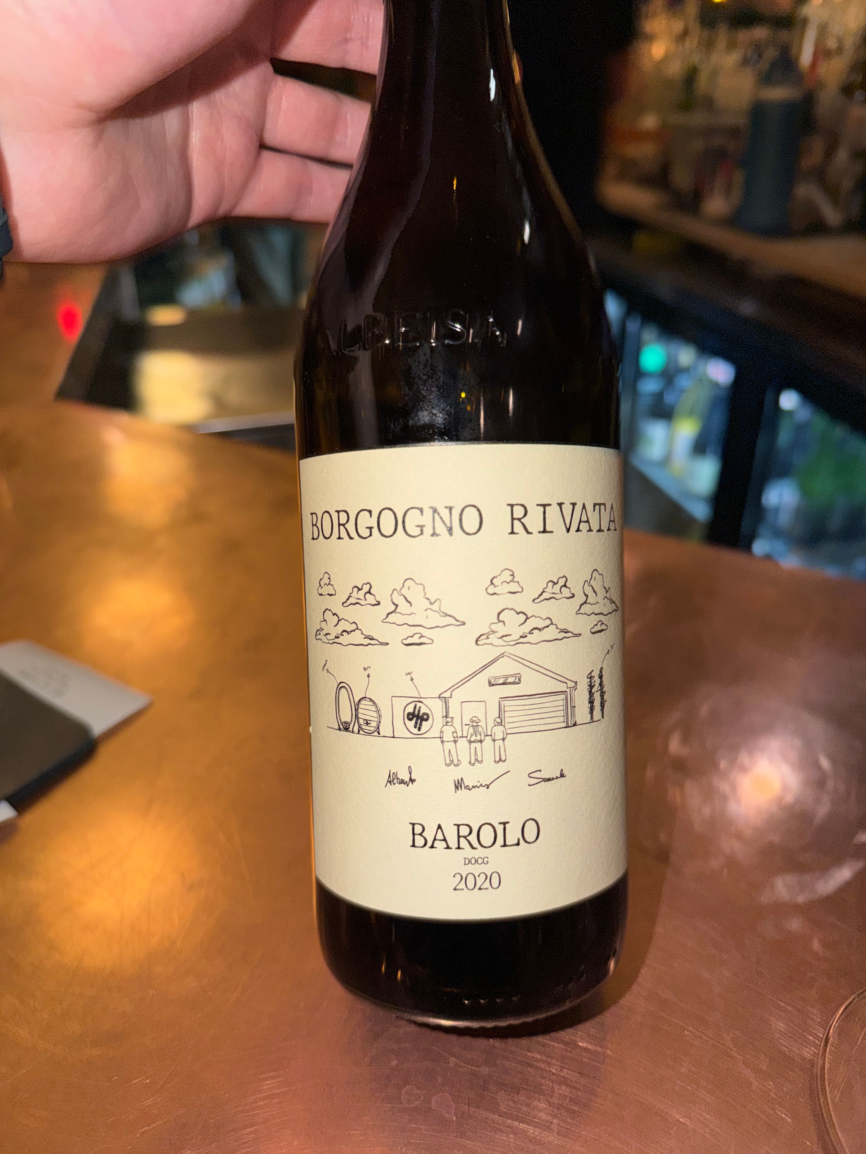 We ordered the mushroom croquettes, oysters, crab toast, scallop crudo, and opened two bottles—Domaine des Marnes Blanches Savagnin En Quatre Vis 2022 and Borgogno Rivata Barolo 2020. Both benefited from being opened up for a bit, especially the Barolo. We started with the Savagnin while we were seating inside, then moved outside when a table opened up and settled into the Barolo, which felt like the perfect progression for the night.